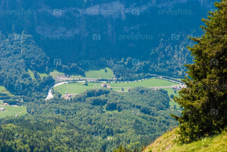 Вид сверху на глубокое красивое ущелье в швейцарских Альпах
