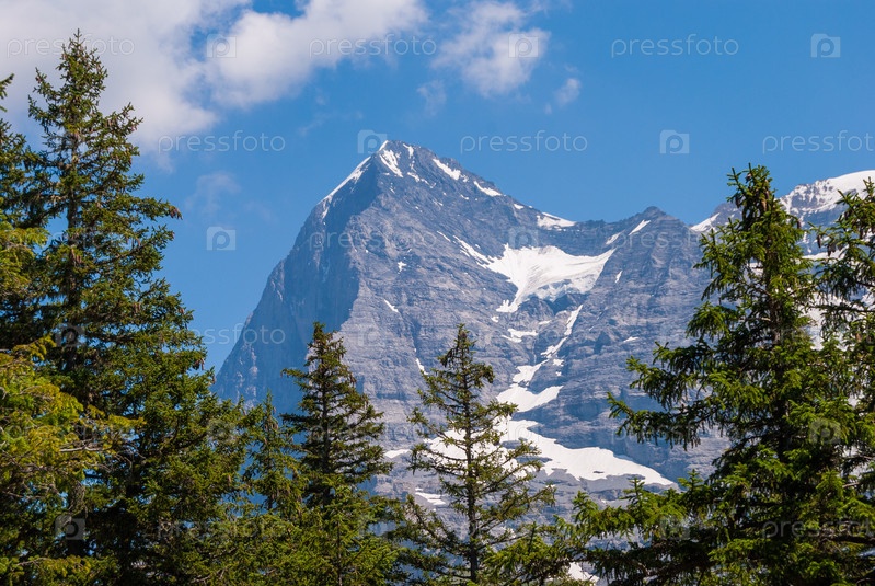 Красивый летний горный пейзаж с видом на пик Эйгер. Бернский Оберланд, Швейцария