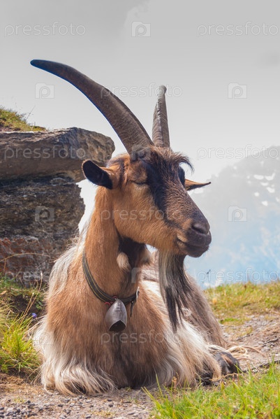 Козел на вершине крутого скалистого склона. Гриндельвальд, Швейцария