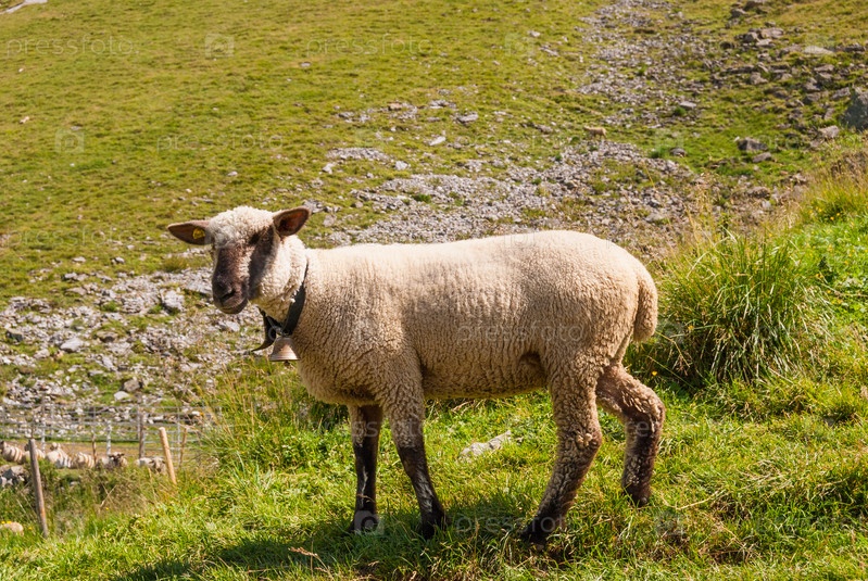 Овцы пасутся на высоком пастбище в швейцарских Альпах