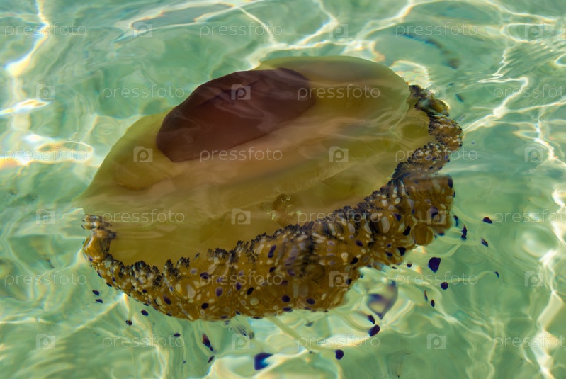 Средиземноморская медуза Cotylorhiza в море у берегов Греции