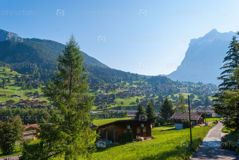 Пейзаж с горной деревней летом, Гриндельвальд, Швейцария