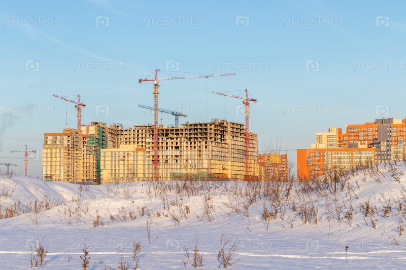 Строительство современного жилого комплекса. Москва, Россия
