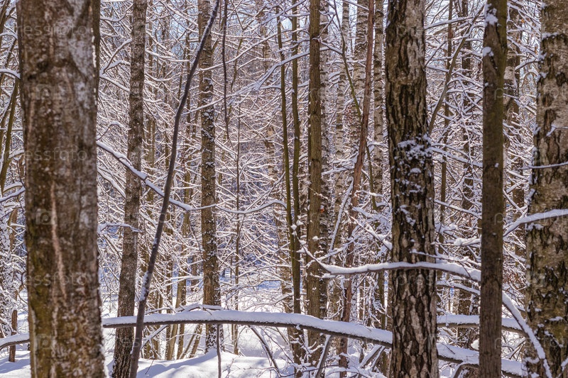 Зимний пейзаж. Заснеженный лес в солнечный морозный день