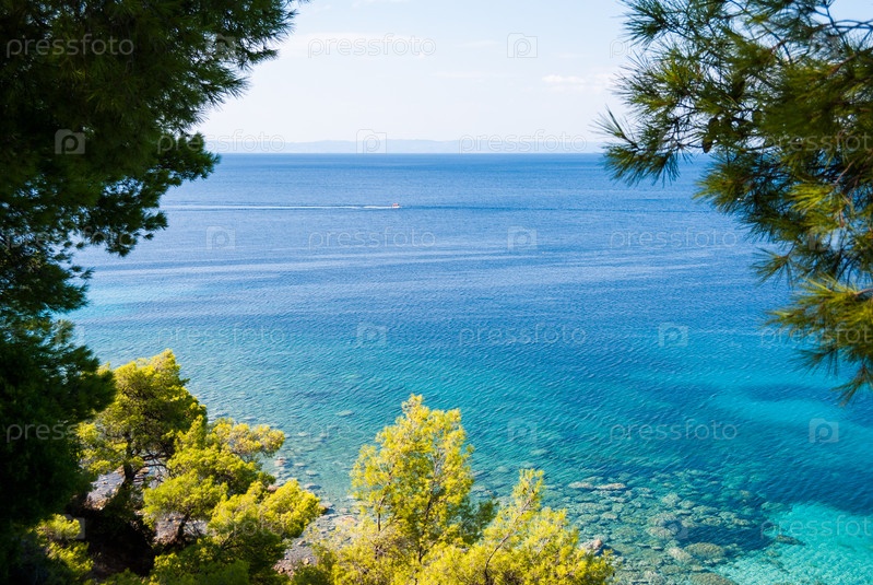 Вид на море через сосновый лес, Халкидики Греция