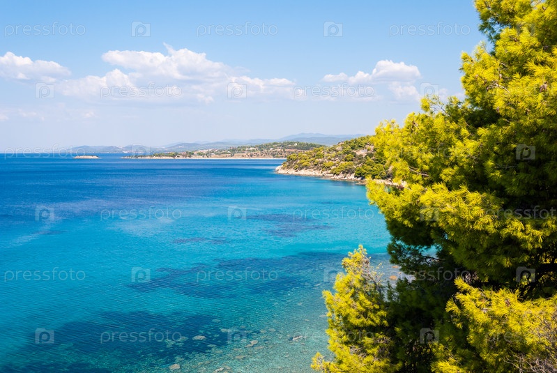 Вид на море через сосновый лес, Халкидики Греция
