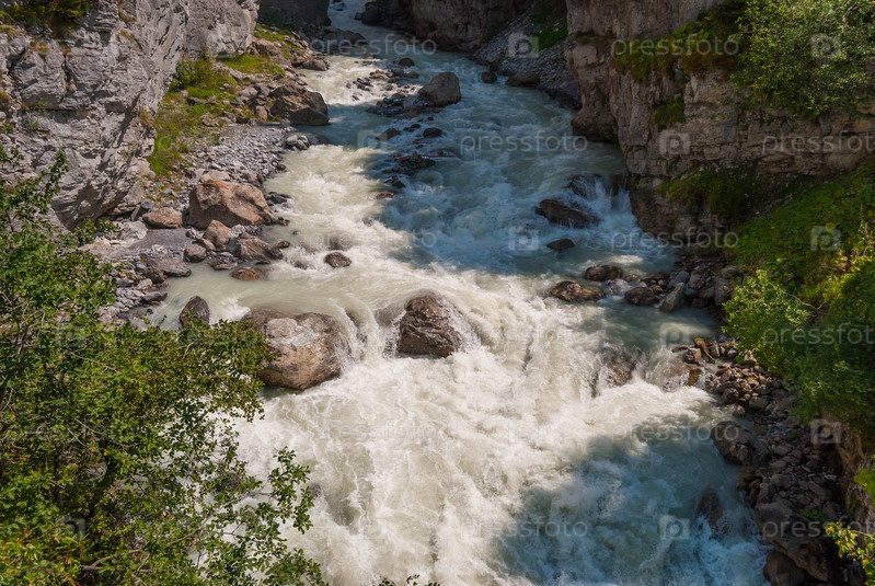 Бурная горная река в швейцарских Альпах, Гриндельвальд, Швейцария