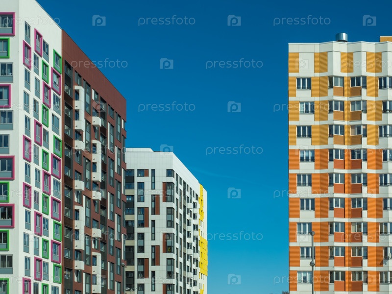 Современное новое жилое здание с красивым ярким фасадом