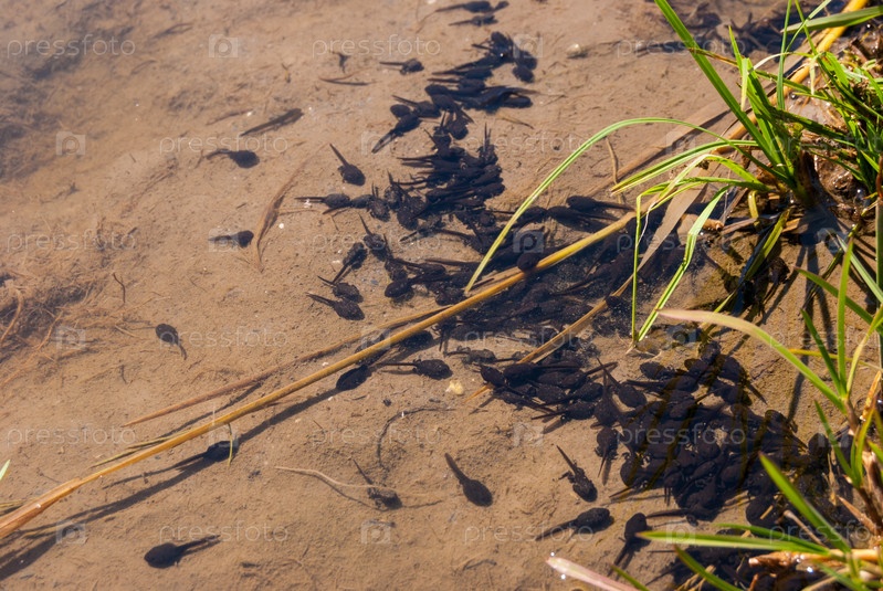 Головастики на мелководье небольшого озера в Швейцарии