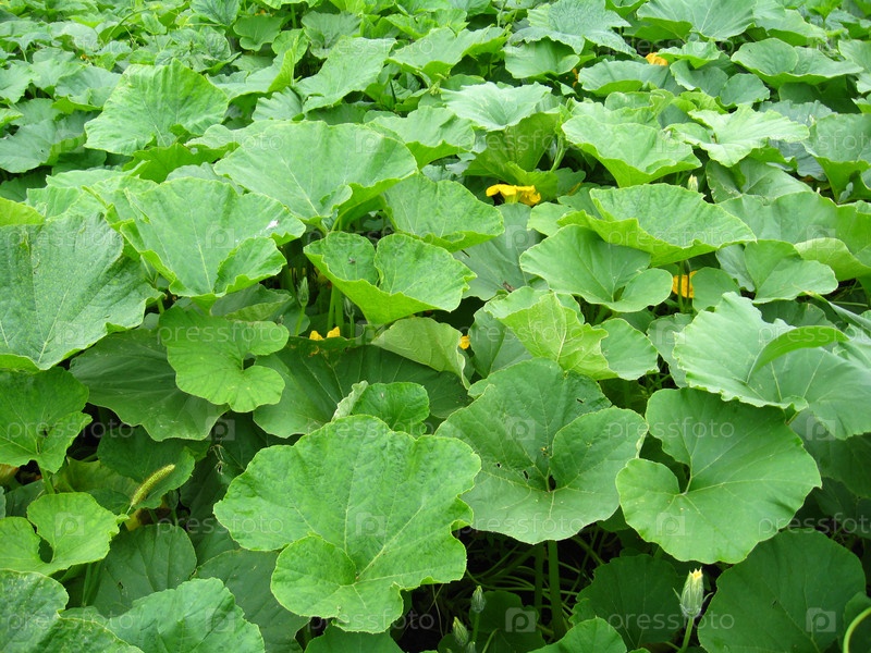 Зеленые листья тыквы на гряде