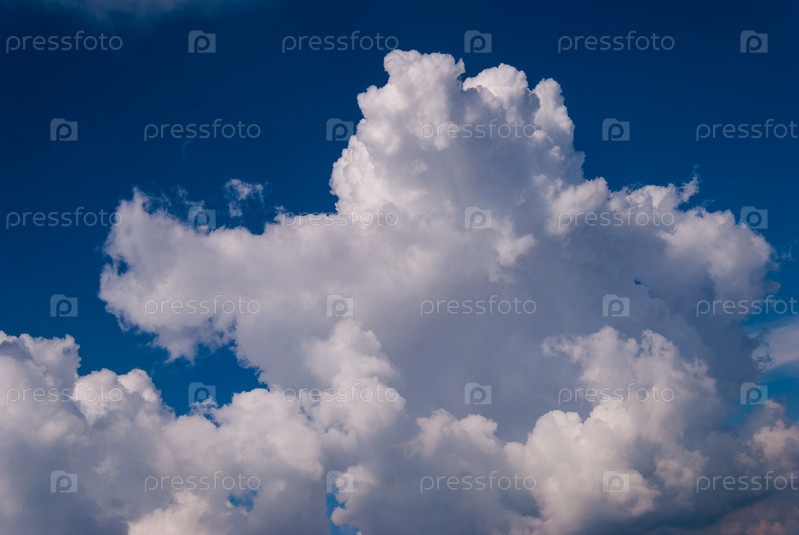 Белые кучево-дождевые облака на фоне голубого неба
