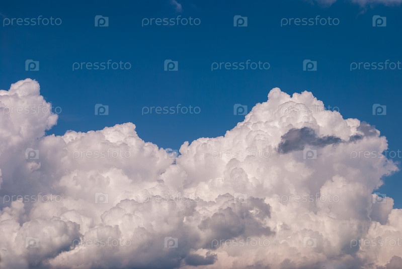 Белые кучево-дождевые облака на фоне голубого неба