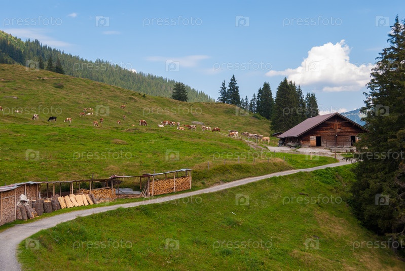 Ферма летом в швейцарских Альпах