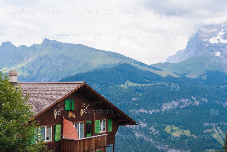 Старое традиционное швейцарское шале на известном швейцарском горнолыжном курорте Мюррен