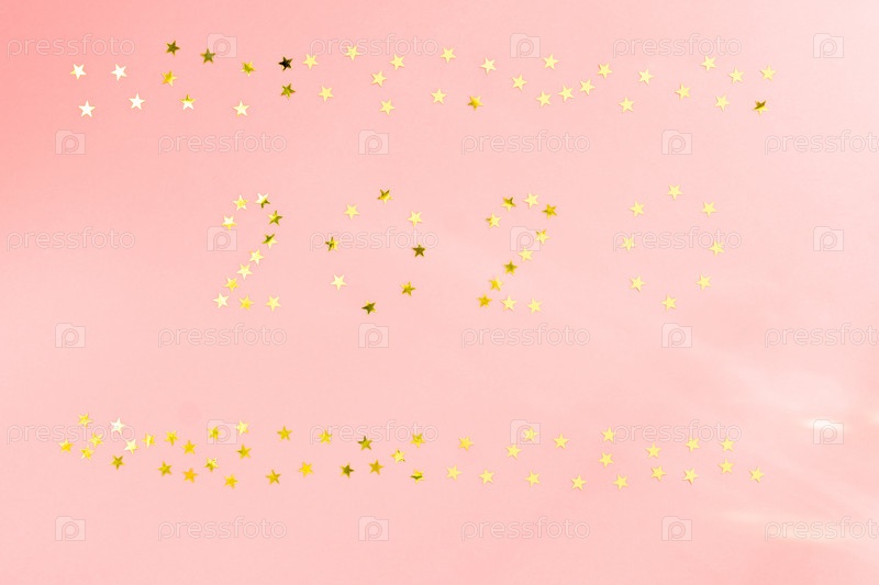 Шаблон дизайна поздравительной открытки с Новым 2020 годом. Плакат для вечеринки, баннер или приглашение золотые блестящие звезды конфетти блестящие украшения на розовом фоне