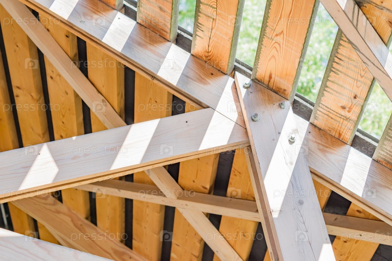 Вид снизу на деревянную конструкцию крыши