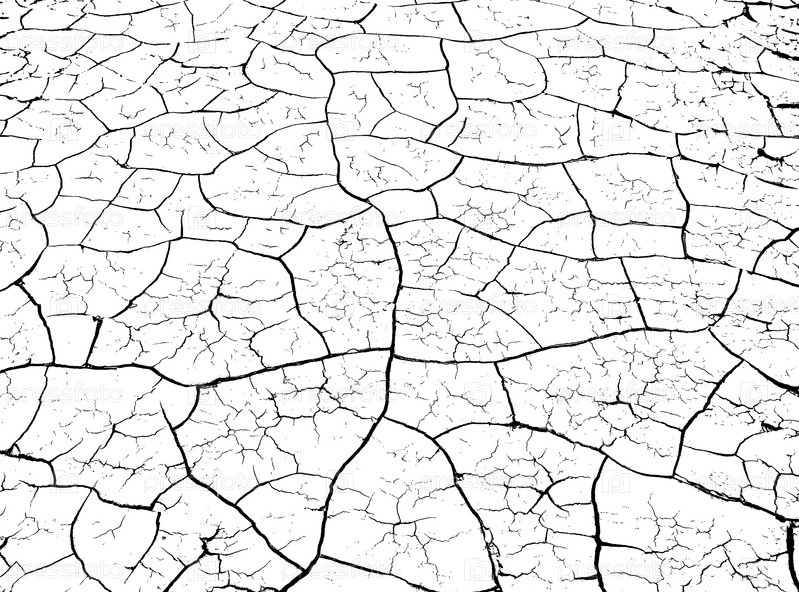 Текстура трещин. Структура сухой потрескавшейся почвы. Черно белая иллюстрация