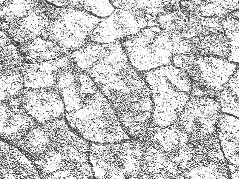Текстура трещин. Структура сухой потрескавшейся почвы. Черно белая иллюстрация