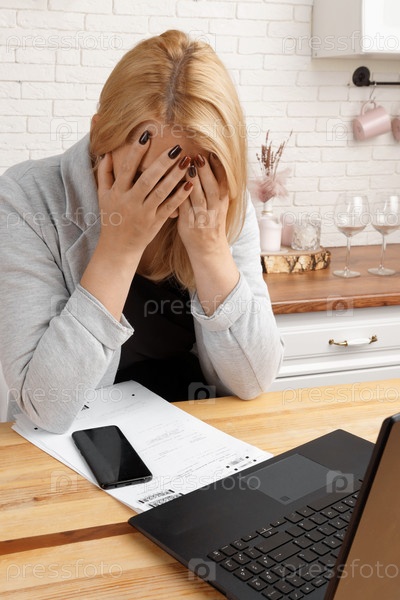Усталая деловая женщина средних лет, работающая в домашнем офисе, сидящая за столом с документами
