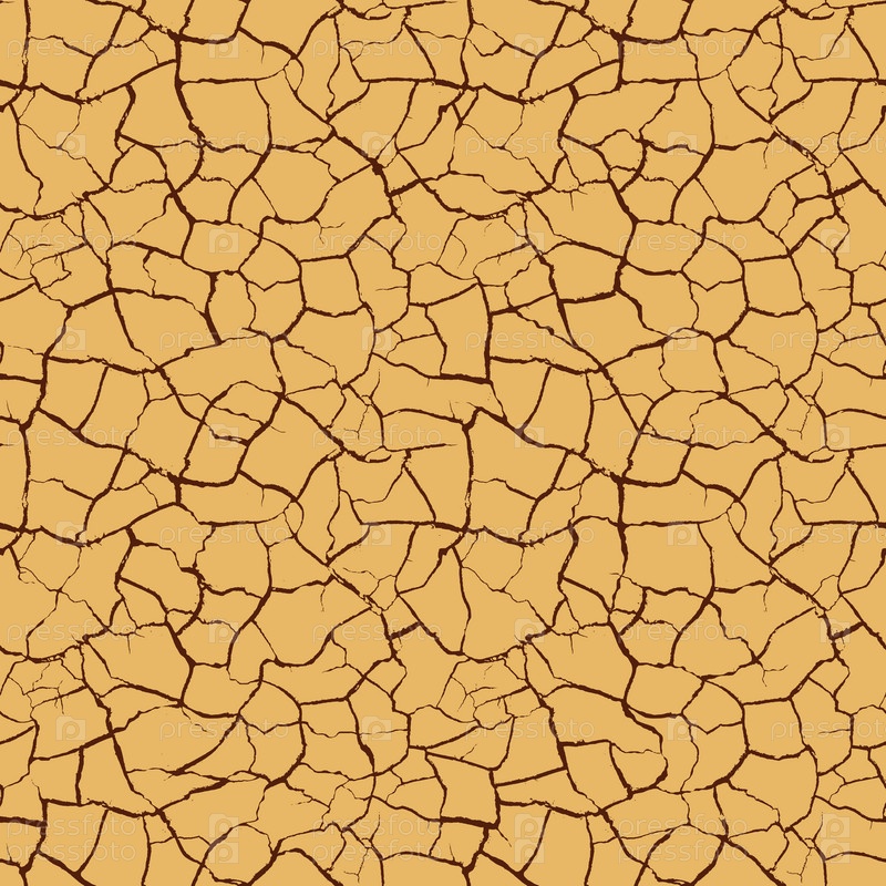 Бесшовная текстура трещин. Структура потрескавшейся почвы. Монохромная иллюстрация