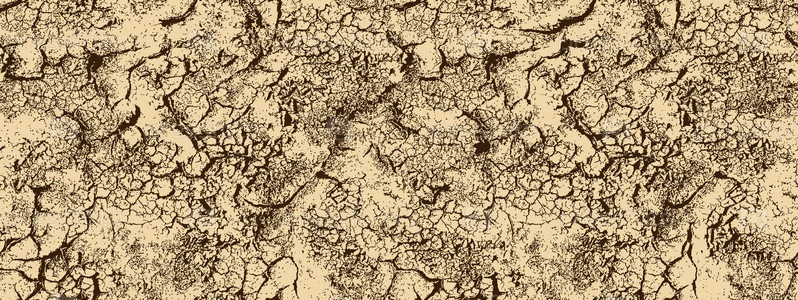 Бесшовная текстура трещин. Структура потрескавшейся почвы. Монохромная иллюстрация