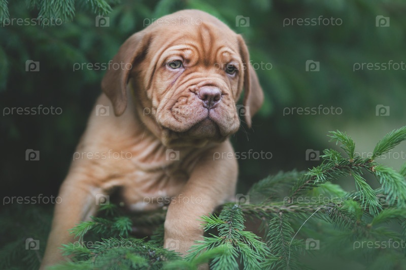 Щенок бордоского дога на улице