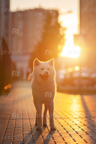 Белая собака акита-ину