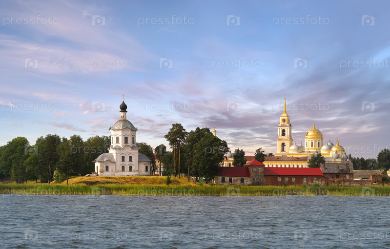 Монастырь Столобный остров на озере Селигер. Тверская область, Россия