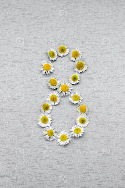 Номер 7 цветка ромашки на сером фоне. Учебные номера, серийный номер, цена, место