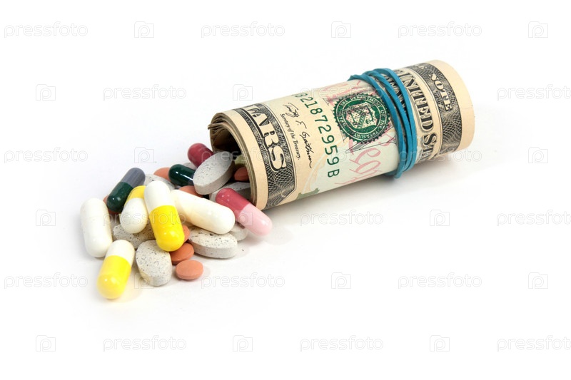 Американская бумажная валюта и таблетки. Платная медицина