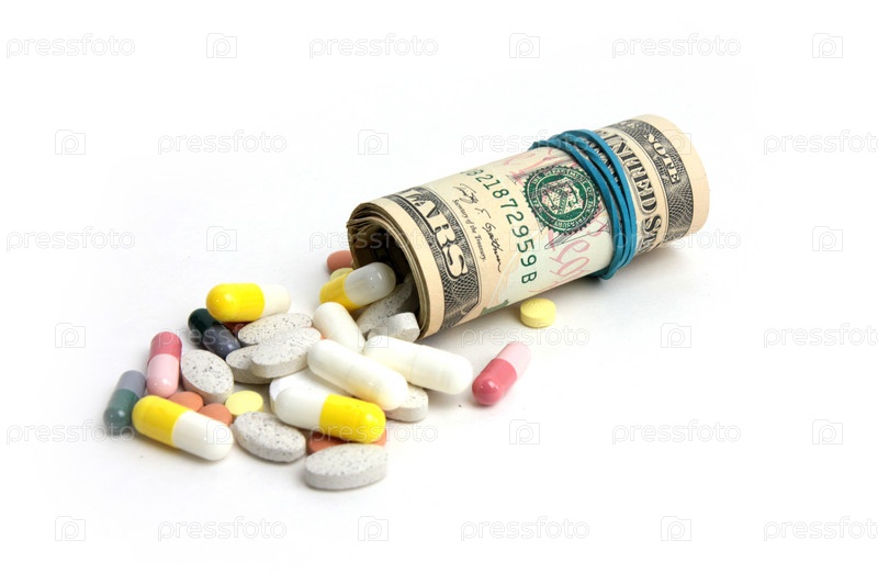 Американская бумажная валюта и таблетки. Платная медицина