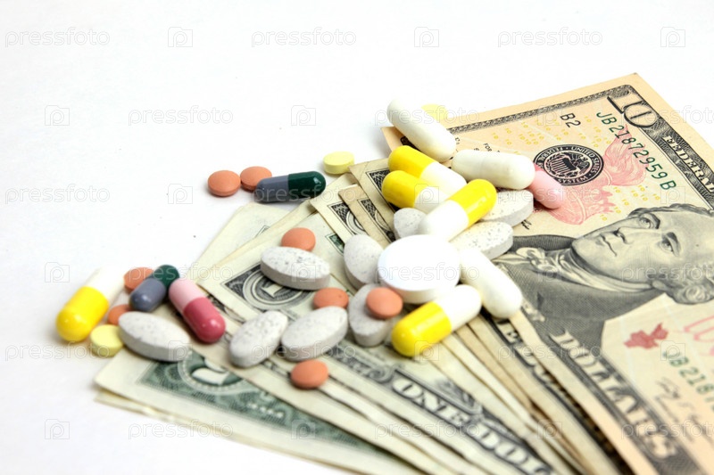 Американская бумажная валюта и таблетки. Платная медицина