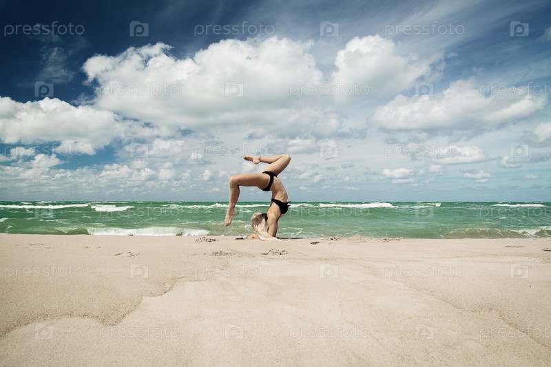 Гимнастка на морском пляже