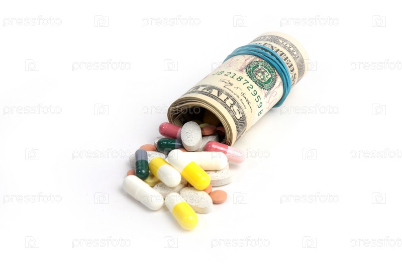 Американская бумажная валюта и таблетки. Платная медицина