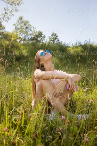 Женщина сидит в траве