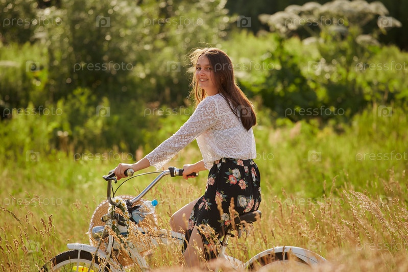 Молодая женщина велосипедист