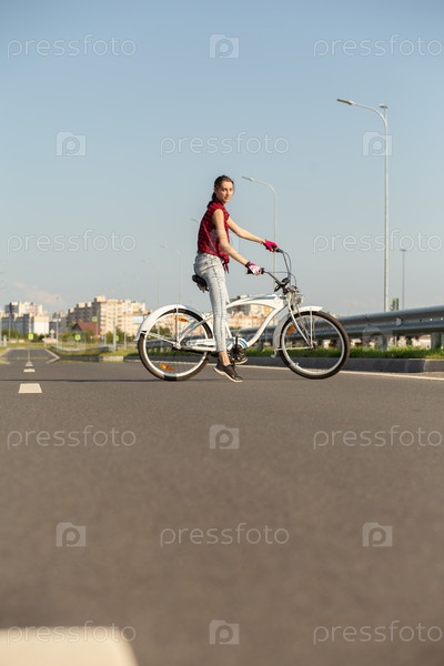 Молодая женщина велосипедист