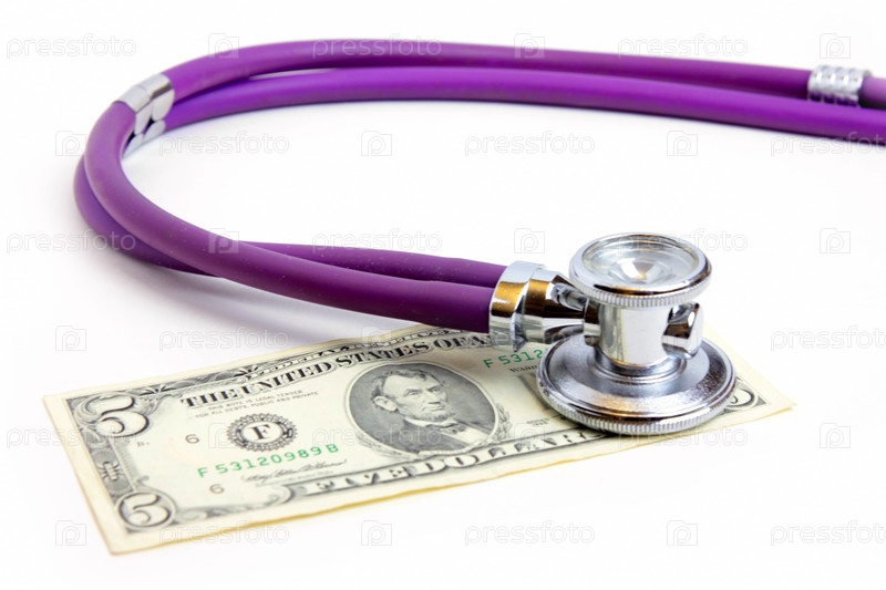 Стетоскоп и доллары в качестве иллюстрации платной медицины