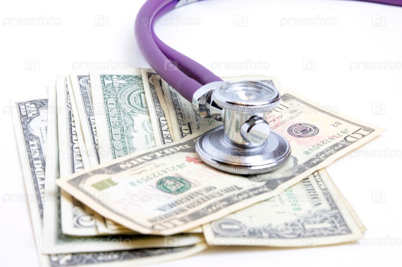 Стетоскоп и доллары в качестве иллюстрации платной медицины