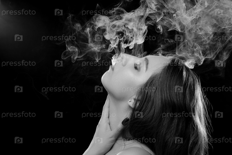 Женщина пускает дым