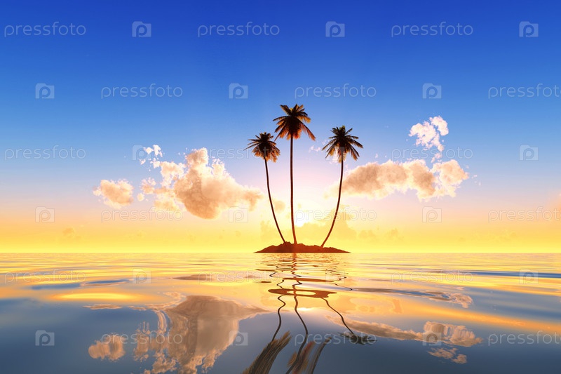 Остров на розовом закате