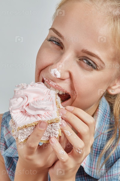 Счастливая красивая девушка со сладким десертом