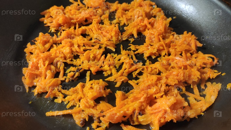 Морковь на сковороде. Ингредиенты. Заготовка. Зажарка
