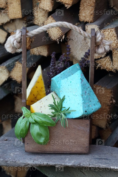 Сыр Песто на деревянной тарелке