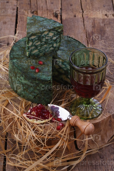 Сыр дерби с шалфеем и гранатом на соломе