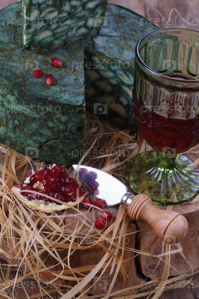 Сыр дерби с шалфеем и гранатом на соломе