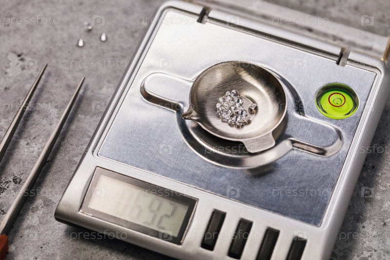 Драгоценные камни на весах ювелирных изделий, крупный план