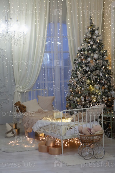 Новогодний интерьер с кроватью