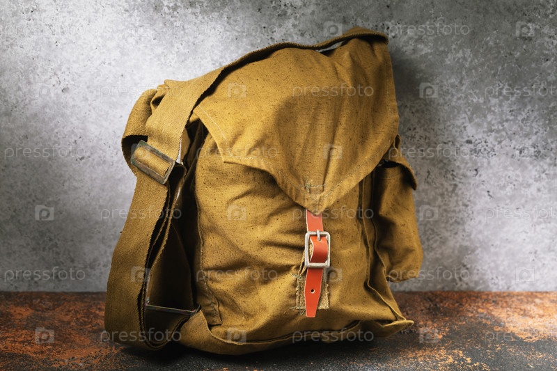 Сумка с противогазом на столе, крупный план