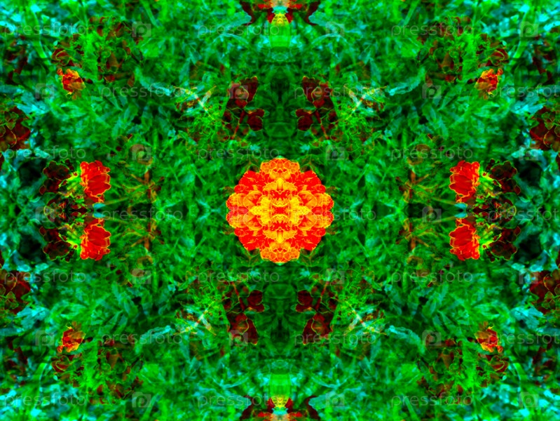 Красивый симметричный узор, составленный в калейдоскопе из элементов живой природы